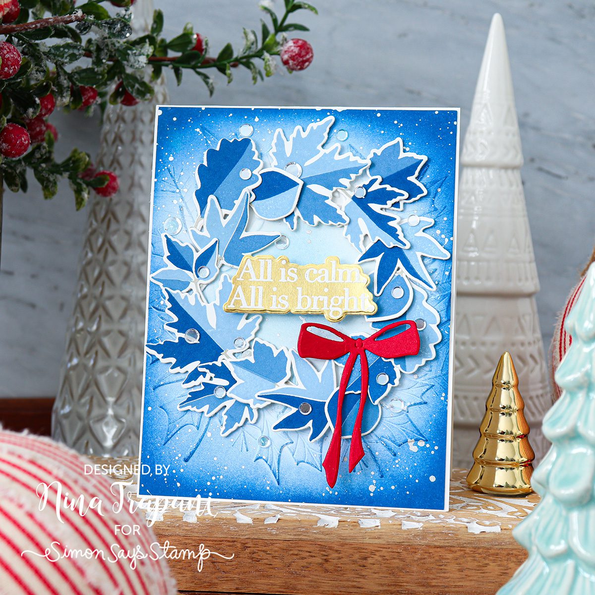 The holiday season is arguably everyone’s favorite time of year to create—myself included! October kicks off the major holiday releases over at Simon Says Stamp…. and the new Sugar and Spice collection has so many beautiful creative products in it! This card features a creative way to repeat stamp and die cut images to form a wreath.